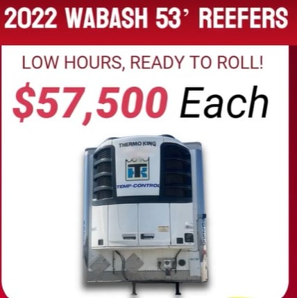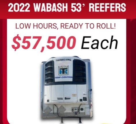 2022 WABASH 53’ REEFERS – LOW HOURS, READY TO SALE. Price: $57,500 Each